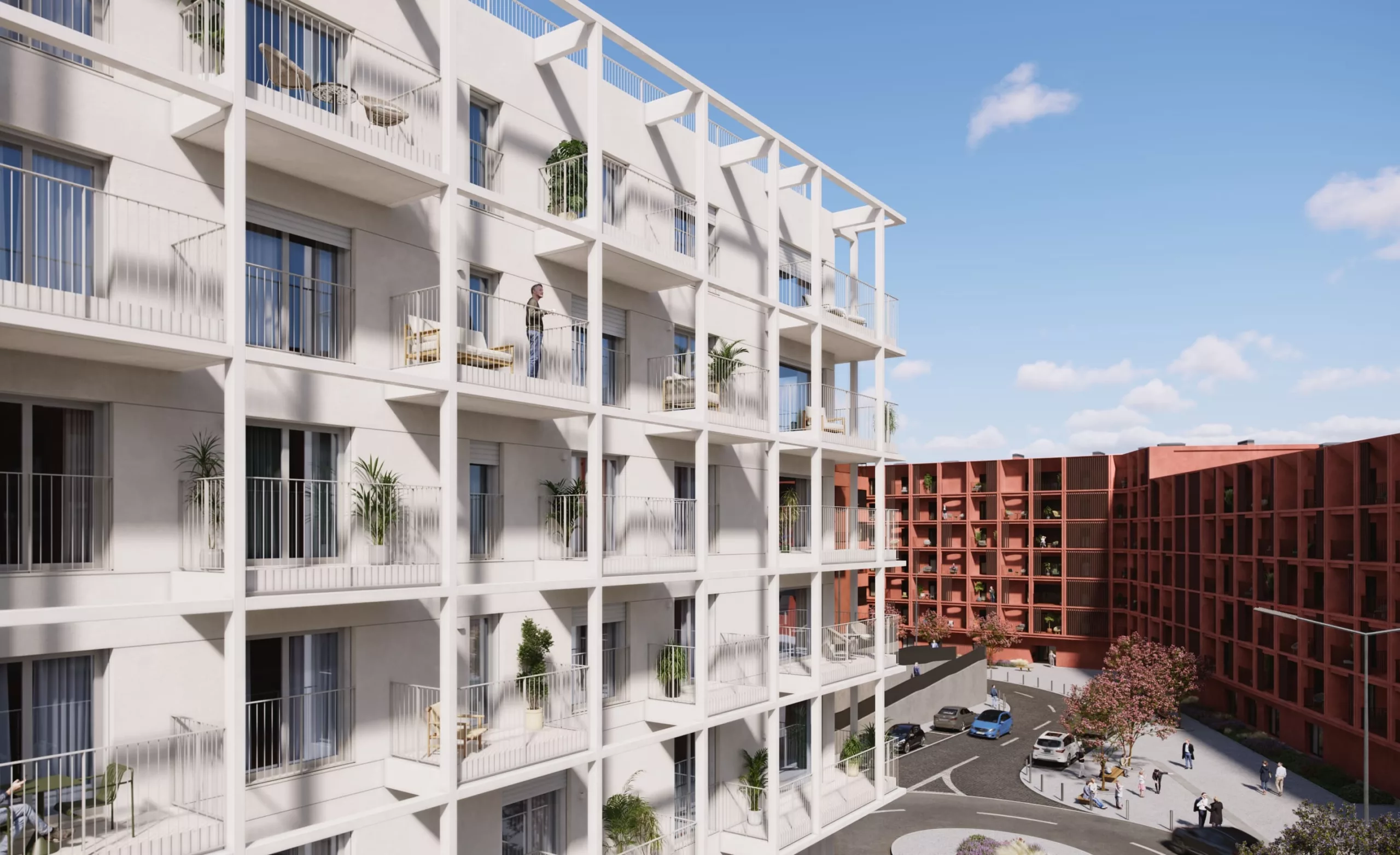 Fachada em ETICS pintada de cor branca (lote 6) e à cor rosa velho alaranjado (lote 1)